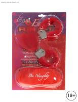 НАБОР ДЛЯ ВЛЮБЛЁННЫХ (наручники + повязка + перо) красный (328336)