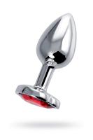 Анальная втулка Штучки-Дрючки, металл, серебряная, с красным кристаллом, 7 см, d 2,7 см, 50 г (0T-00