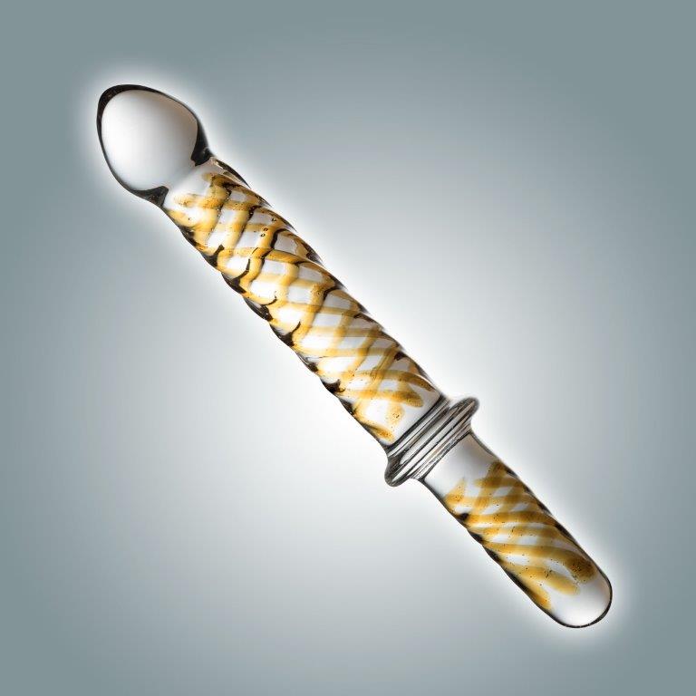 Двухголовый анально-вагинальный стимулятор из стекла ручной работы, очень эргономичный. Игрушка имеет абсолютно ребристую поверхность, что обеспечивает дополнительную стимуляцию и приятное скольжение в самые потайные места! Головки  увеличенного диаметра разной формы, это позволит получить больше ощущений во время вагинального массажа.