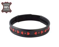 Изысканный ошейник, привнесёт в ролевые игры нотку романтизма, и обязательно привлечёт внимание к Вашей шее. Черный ошейник из натуральной кожи, с красными вставками в виде сердечек. На ошейнике имеется несколько кнопок, которые позволяют подогнать его под необходимый размер.